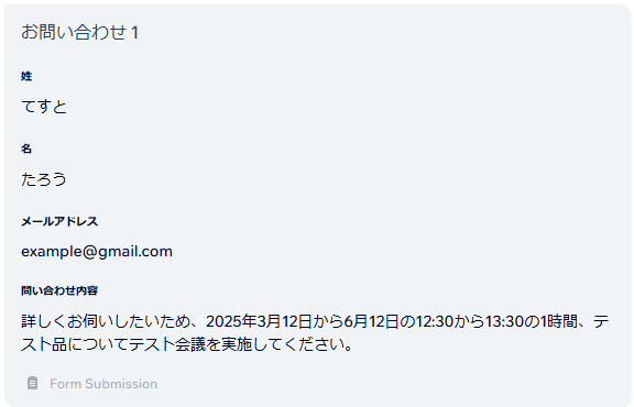 Webhookを貼り付けたら、WixのWebページで、フォーム送信を行います。