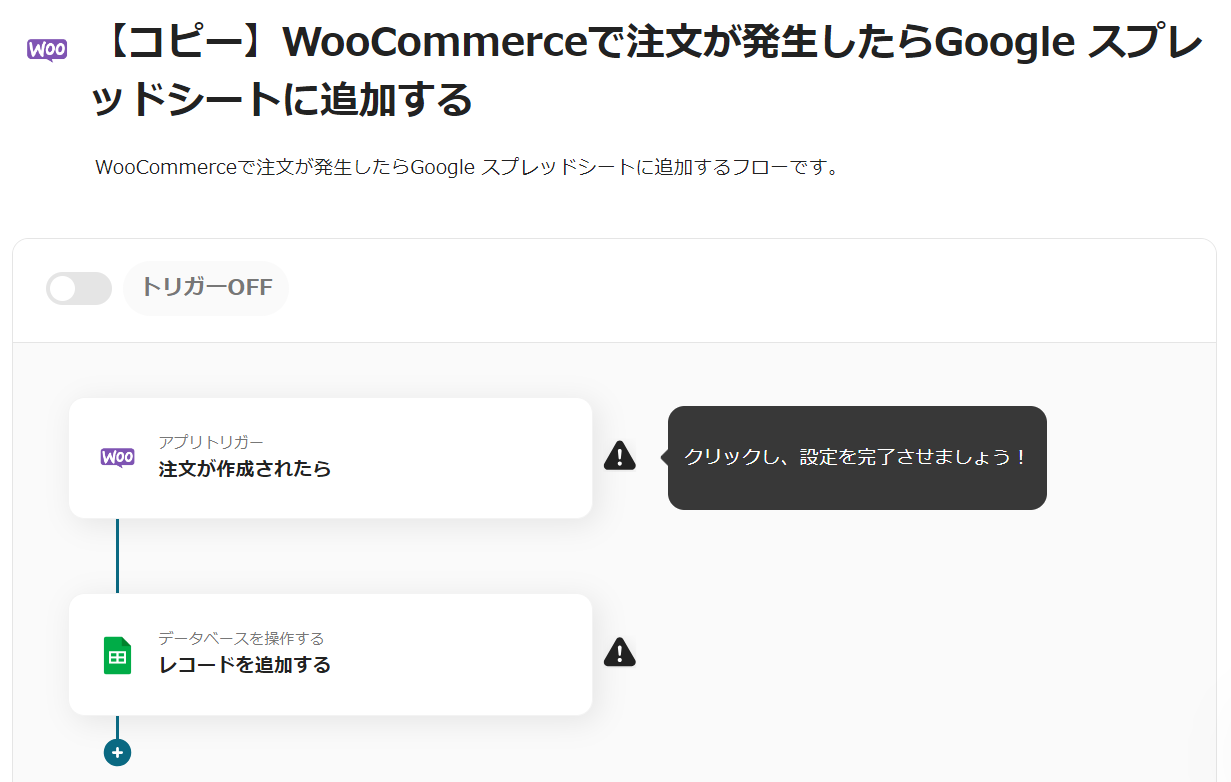 たとえば、WooCommerceで注文が発生した際に、Google スプレッドシートに自動的に登録することができます。
