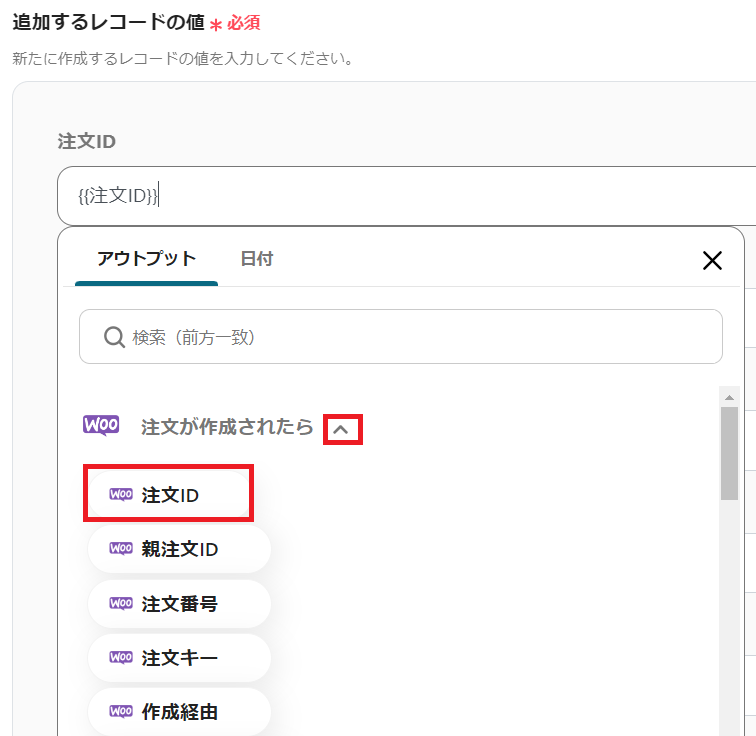 スクロールし、「追加するレコードの値」を設定しましょう。