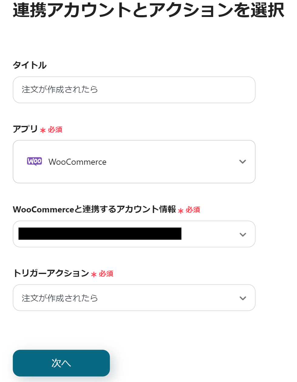 最初にWooCommerceの設定から始めるため、「注文が作成されたら」をクリックしてください。
