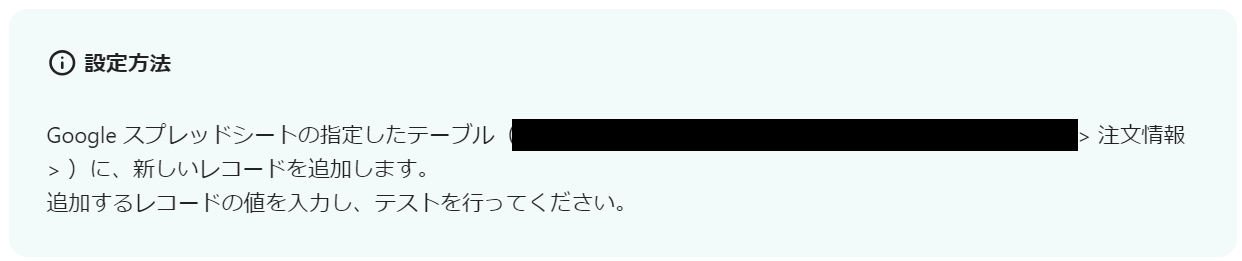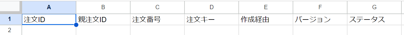 テスト用に注文情報をGoogle スプレッドシートに設定してください。