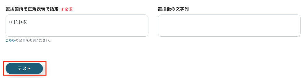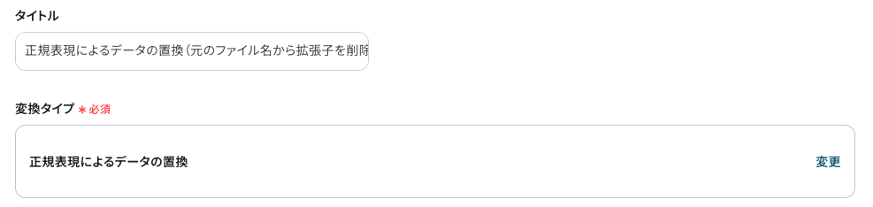 - タイトル:任意設定(例:「正規表現によるデータの置換(元のファイル名から拡張子を削除)」)