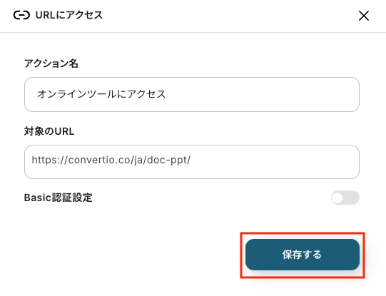 ※今回は操作例として、DOC (WORD)からPPTへのコンバーターを使用しています。用途や社内ルールなどに応じてURLをカスタマイズして使ってください。