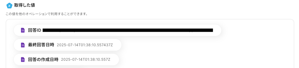 ・Googleフォームをトリガーとして使用した際の回答内容を取得する方法は下記をご参照ください。