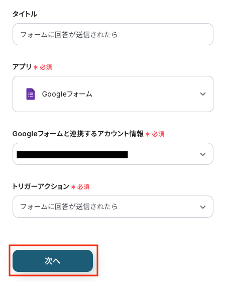- タイトル:任意設定(例:「フォームに回答が送信されたら」)