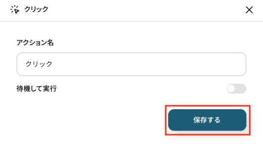 - アクション名:任意設定(例:「クリック」)