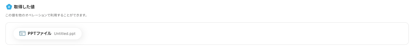 - ファイル:任意設定(例:「PPTファイル」)