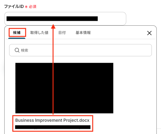 - ファイルID:候補から選択