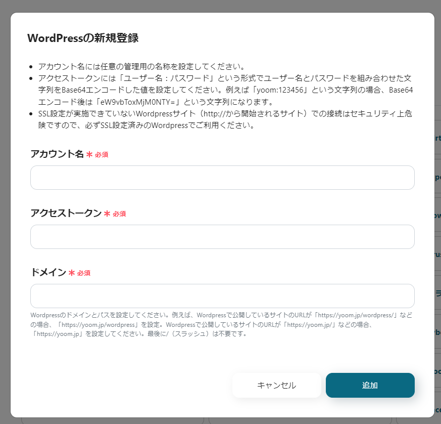 最初にYoomとWordPress・Airtableを連携させておきましょう。