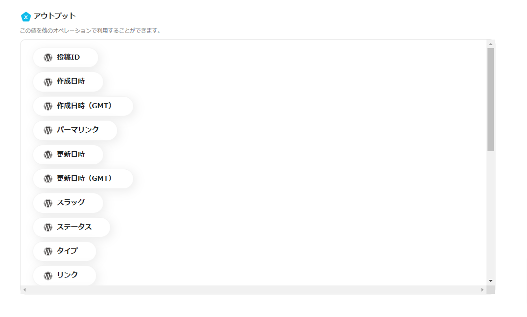 (このアウトプットは、今回のフローでは使用しません。)