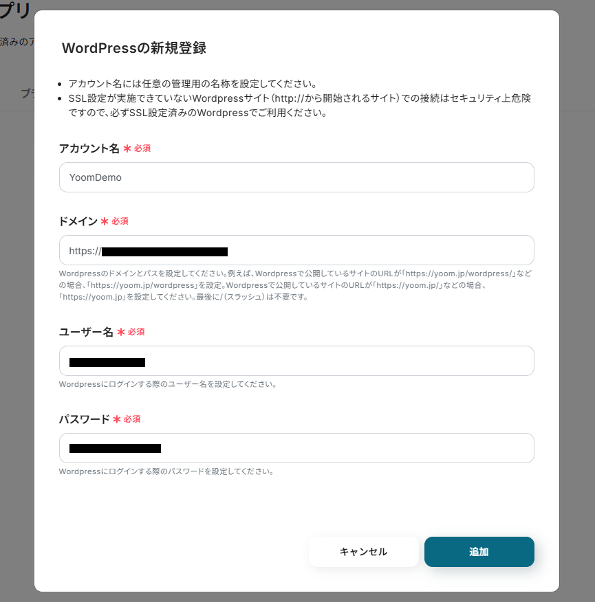 それでは、今回のフローで使用するWordPressのマイアプリ登録方法を解説していきます。