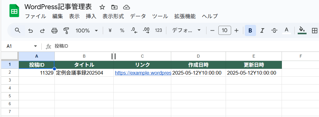 では、WordPressから取得した投稿情報をGoogle スプレッドシートに追加しましょう。
