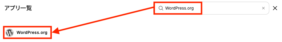 検索窓に「WordPress.org」と入力し、対象のアプリを選択します。
