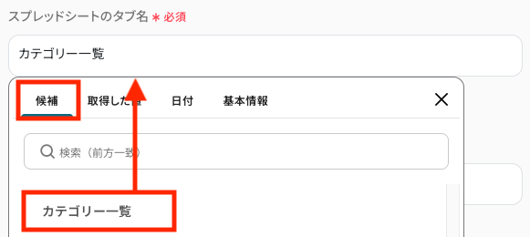 テンプレートの「カテゴリ一覧を取得」をクリックしてください。