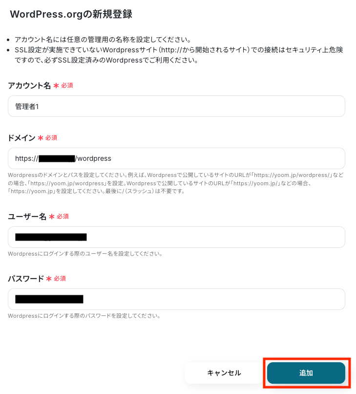 - Slack、WordPress.orgのそれぞれとYoomを連携してください。