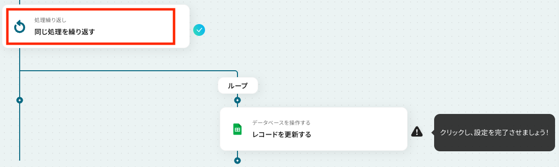 - 「同じ処理を繰り返す」オペレーション間の操作は、チームプラン・サクセスプランでのみご利用いただける機能となっております。フリープラン・ミニプランの場合は設定しているフローボットのオペレーションやデータコネクトはエラーとなりますので、ご注意ください