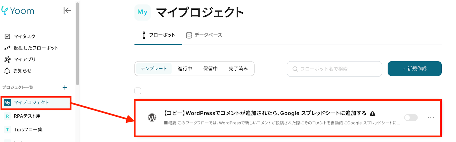 それでは、さっそく実際にWordPressとGoogle スプレッドシートを連携したフローを作成してみましょう!