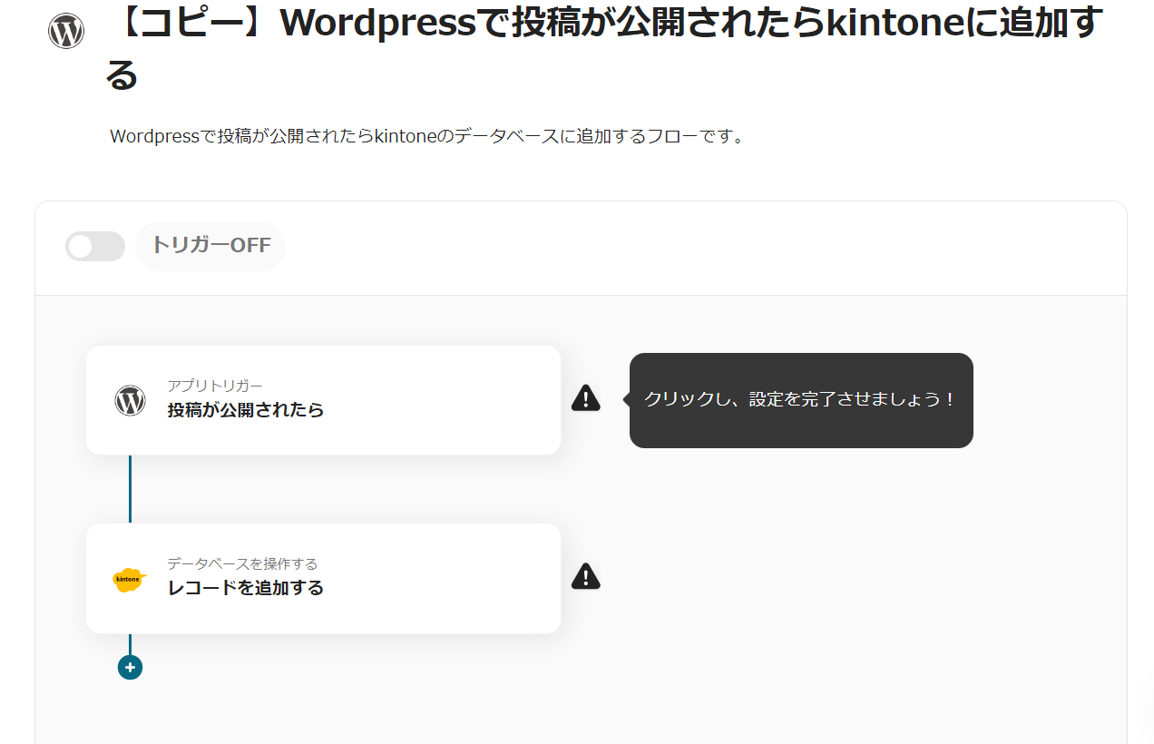 今回は、【WordPressで投稿が公開されたらkintoneに追加する】というフローを作成します。