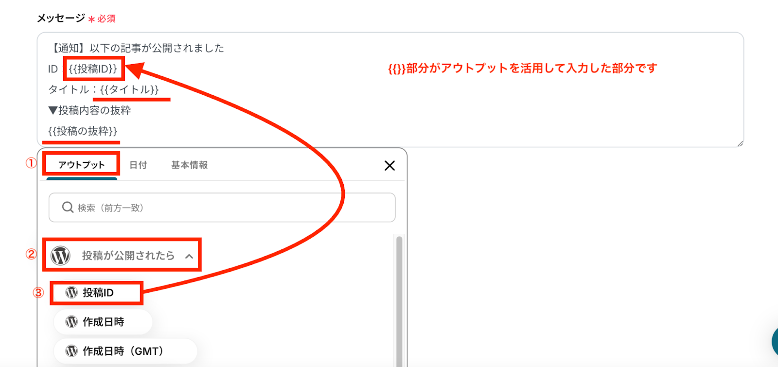 ※アウトプットの詳しい説明はこちらをご確認ください。