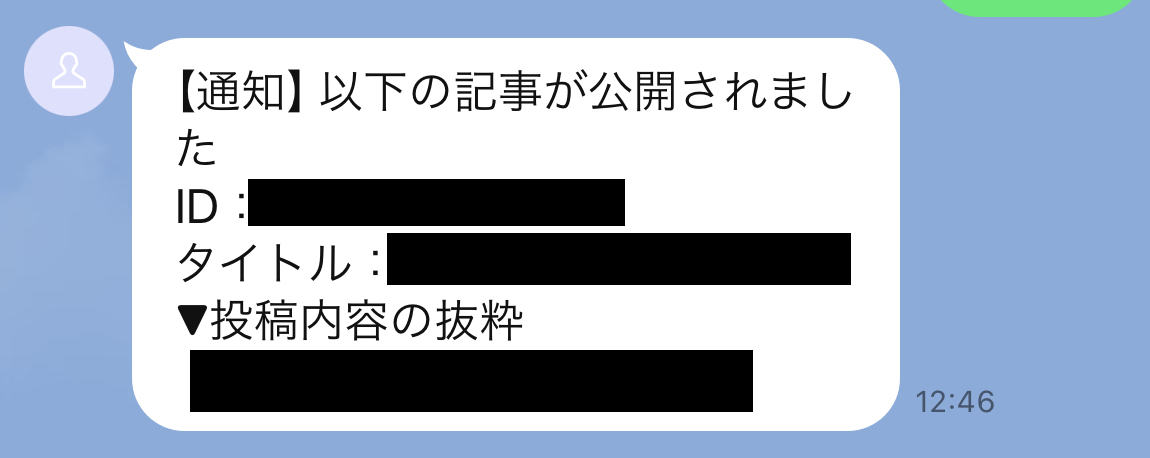関係者へ記事公開時にLINE通知を自動送信することで、業務の効率化につながります。