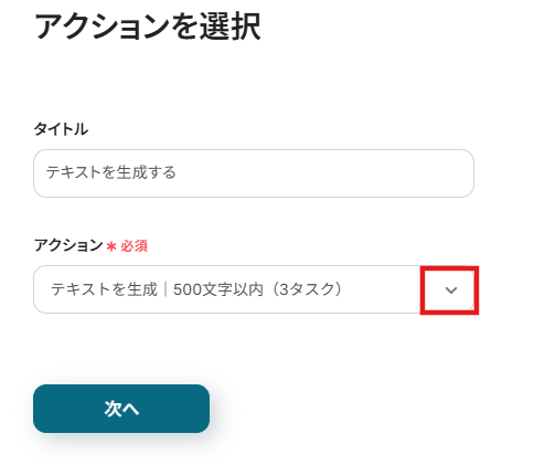 先ほどと同様にタイトルと連携するアカウント情報を任意で設定し、アクションはテンプレート通りに「チャンネルにメッセージを送る」のまま「次へ」をクリックして進んでください。