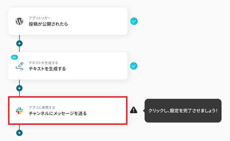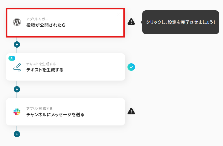 - WordPressのトリガー設定とAIによる要約、Slackへの通知アクション設定