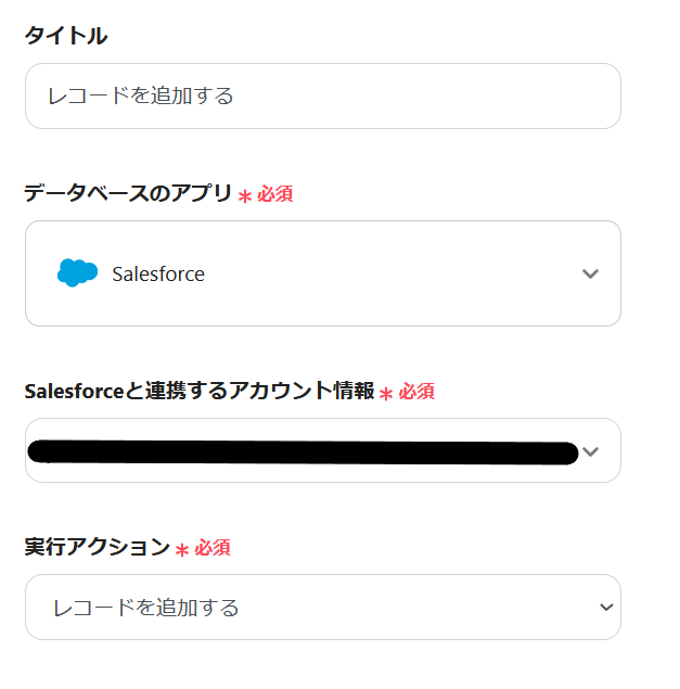 Salesforceと連携するアカウント情報を入力します。