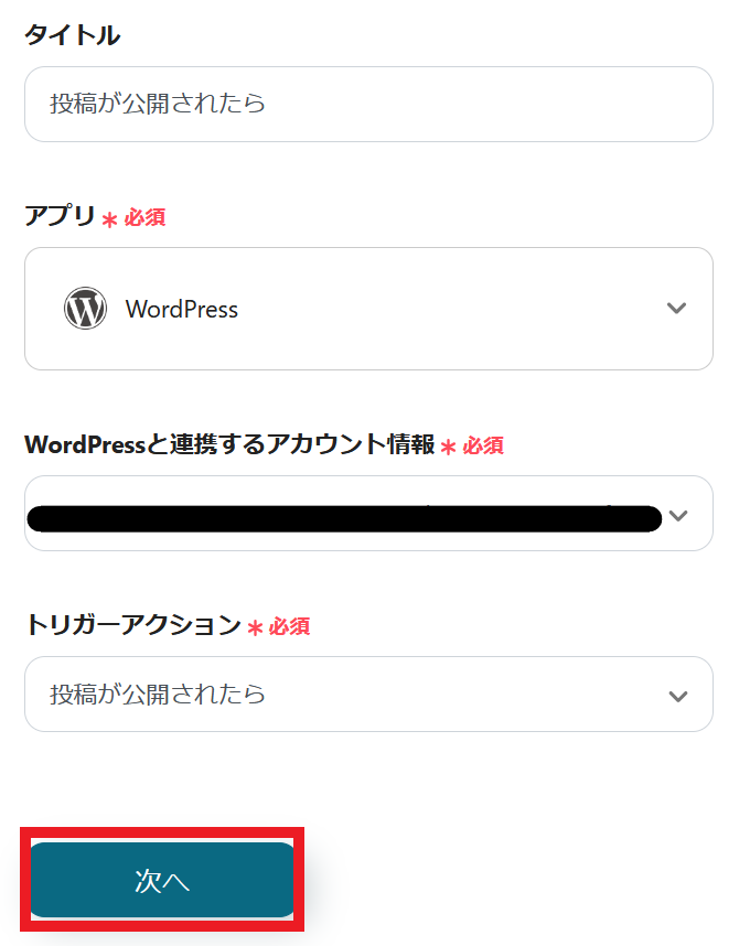 ステップ3: WordPressで投稿が公開されたら起動するトリガーを設定