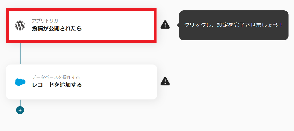 5.これで【WordPressで投稿が公開されたらSalesforceに追加する】というフローが完成しました。