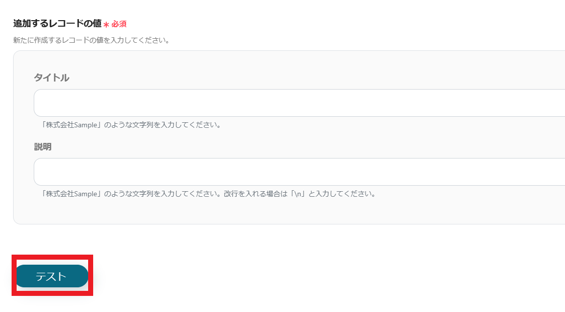 ※追加するレコードの値には、データベースの項目が一覧で表示されます。