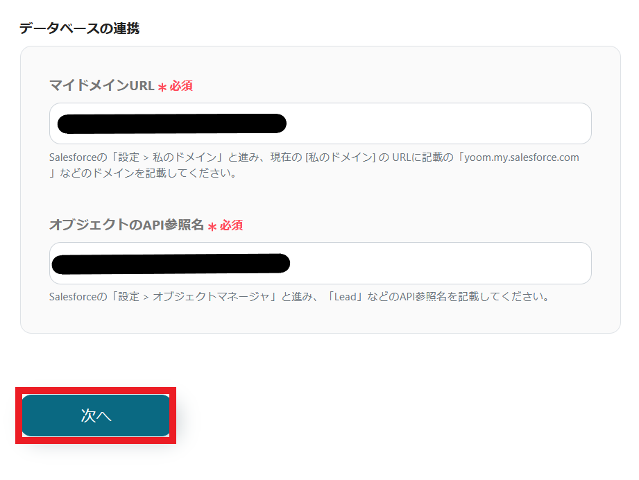3.マイドメインURL、オブジェクトのAPI参照名を入力してください。