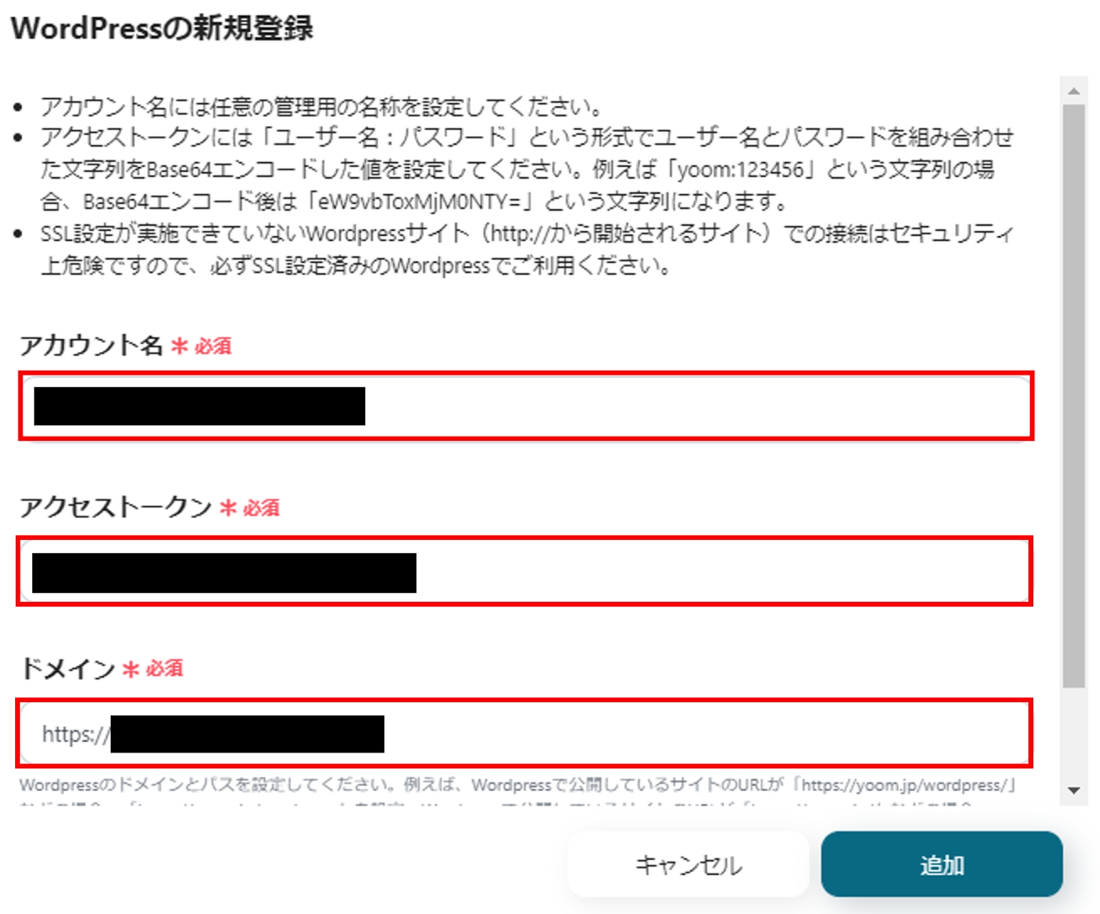 (3)アプリの一覧からWordPressを選択し、新規登録画面の指示に従って以下を設定