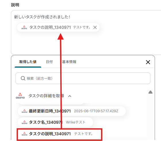 4.「説明」は定型文やアウトプットを組み合わせることで、タスクごとの内容に合わせて設定できます。