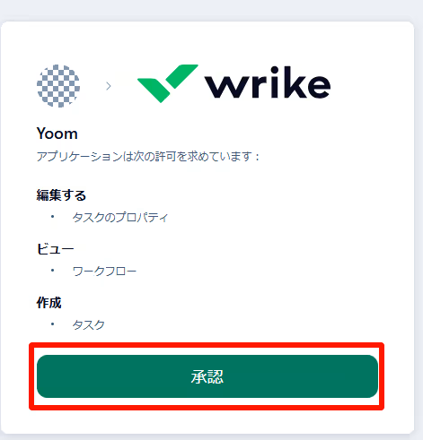 ログイン後、Yoomとの連携を「承認」してください。