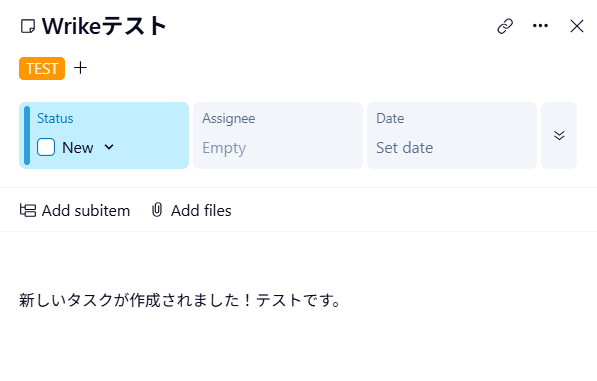 テストが成功したら、Wrikeに登録できていることを確認しましょう!