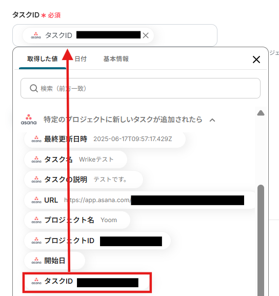 ステップ4:Asanaのタスク詳細を取得する設定