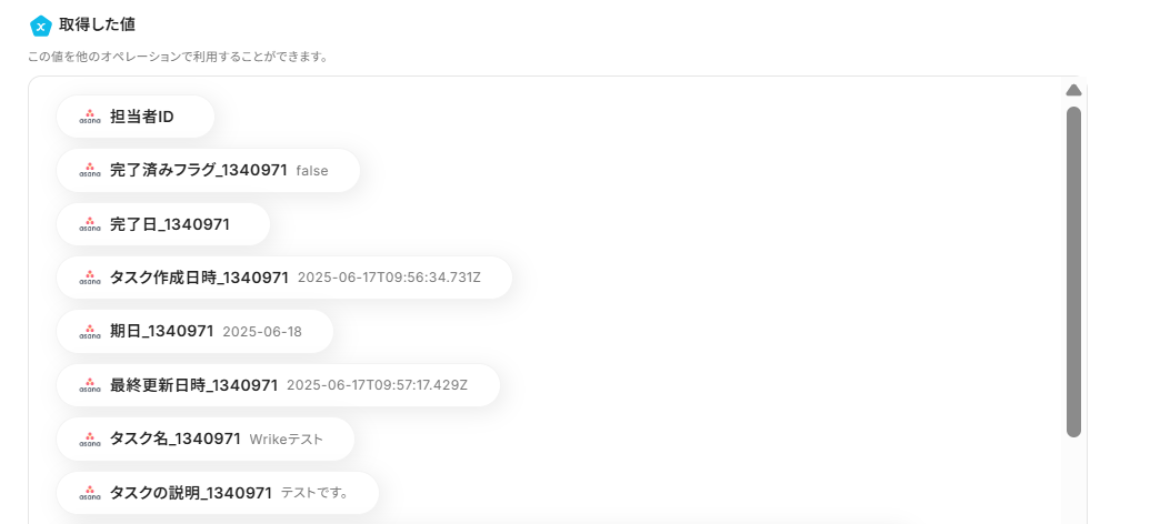 これでWrike APIとの連携は完了です。
