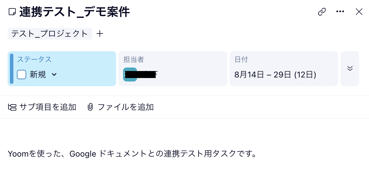 この時に作成するタスクは「Sampleプロジェクト」や「Demo案件」など、架空の情報でOKです!