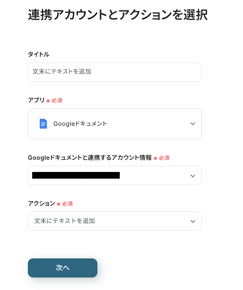 続いて、Wrikeに作成されたタスク情報を、特定のGoogleドキュメントの文末に追加する設定を行います。