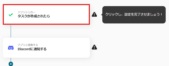 まずは、アプリトリガー「タスクが作成されたら」をクリックしましょう。