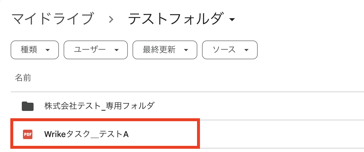 テスト成功が確認できたら、Google Driveにもファイルが保存されています。
