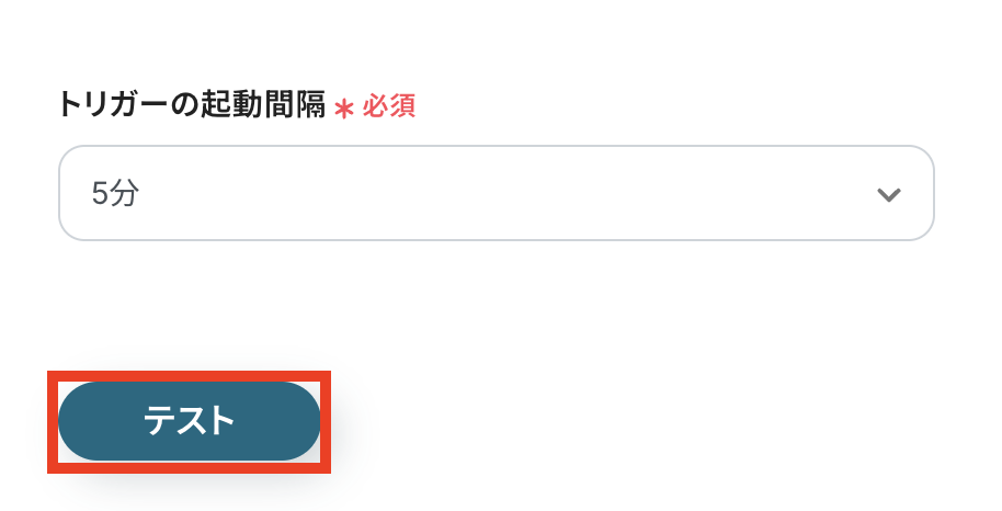 次にAPI接続設定を行います! トリガーの起動間隔を選択してください。 トリガーの起動タイミングは、5分、10分、15分、30分、60分のいずれかで設定可能です。 選択できる最短の起動間隔を選びましょう。