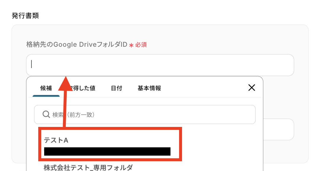 発行した書類を格納しておくGoogle DriveのフォルダIDを選択します。