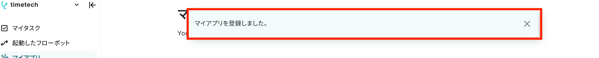 マイアプリの接続画面に戻ります。ページ上部に「マイアプリを登録しました」という表示が出てきたら、接続は完了です!