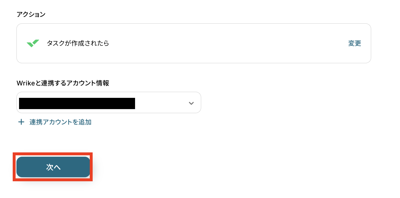 連携アカウントとアクションを選択しましょう。