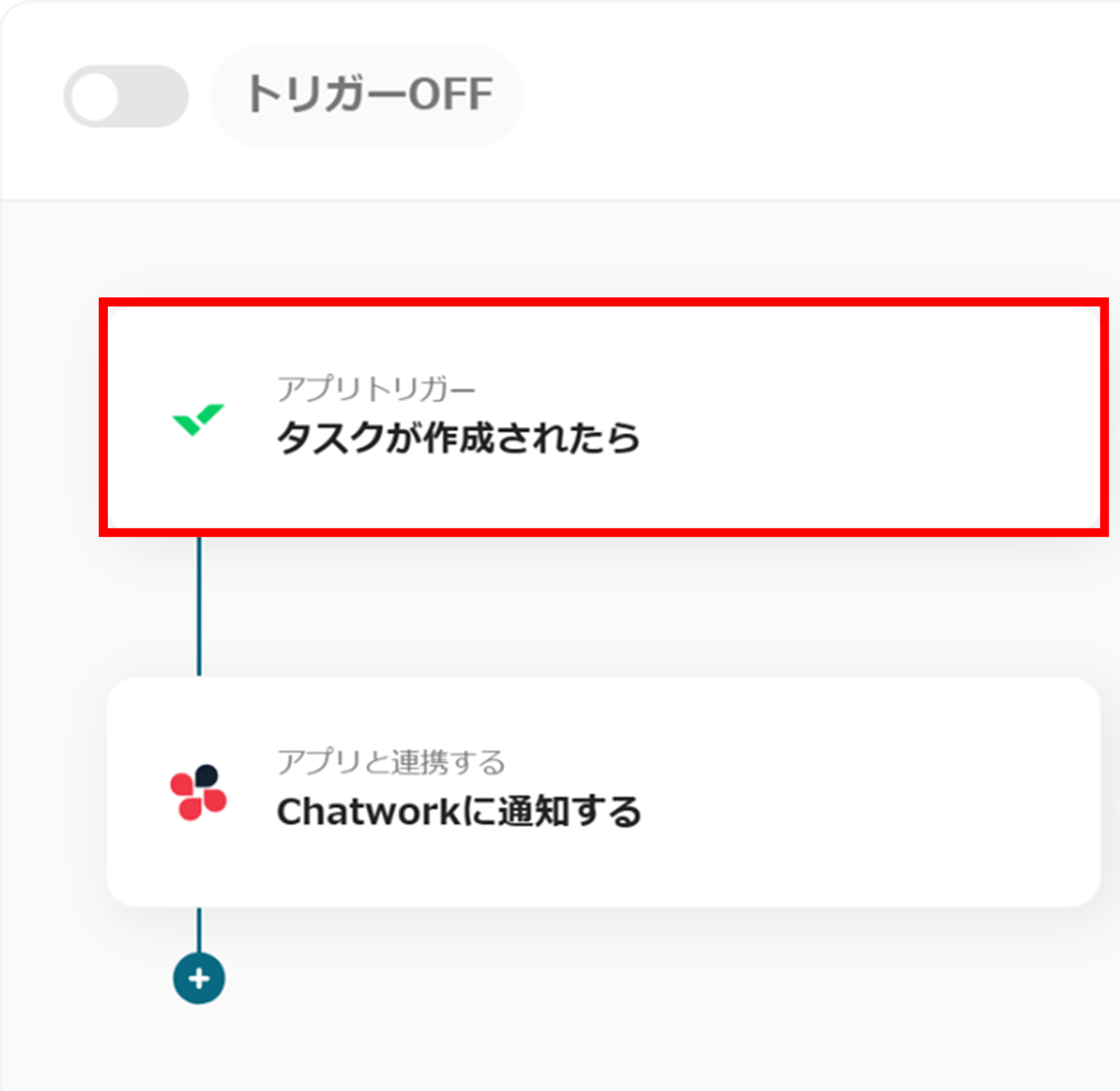 アプリトリガーの「タスクが作成されたら」をクリックします。