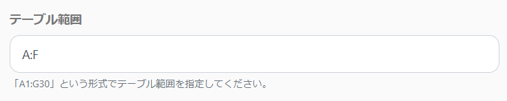 テーブル範囲に関しては用意したGoogle スプレッドシートに依存するため、Google スプレッドシートの内容に沿って入力していきましょう。 入力出来たら次へを押します。
