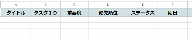 Wrikeのタスクを保管しているGoogle スプレッドシートの作成がまだの場合は、用意しておきましょう。 今回は画像のように作成しました。