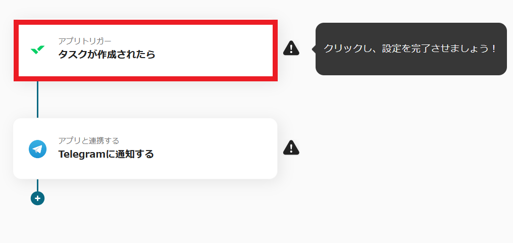 4.これで、【Wrikeにタスクが登録されたらTelegramに通知する】というフローが完成しました。