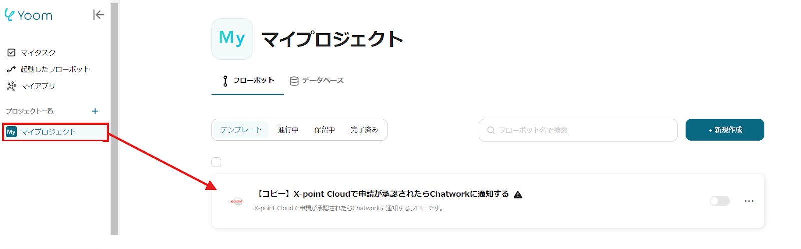 ここからは、Yoomのテンプレート【X-point Cloudで申請が承認されたらChatworkに通知する】という連携フローを使って設定をしていきます。